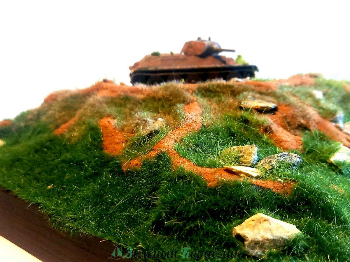 Виньетка на деревянной рамке для размещения моделей в масштабе 1:72, 1:100 и подобных. Материал: электростатический флок, песок, камень-змеевик, цветные присыпки. Модель на фото в масштабе 1:100 - для примера и в комплект не входит