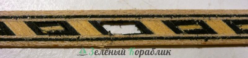 Орнамент двухсторонний с прорезями ромбической формы на липовой рейке 0,8х7мм,длина рейки 245 мм , (нуждается в дальнейшей обработке,необходимо отделить внутреннюю часть орнамента).