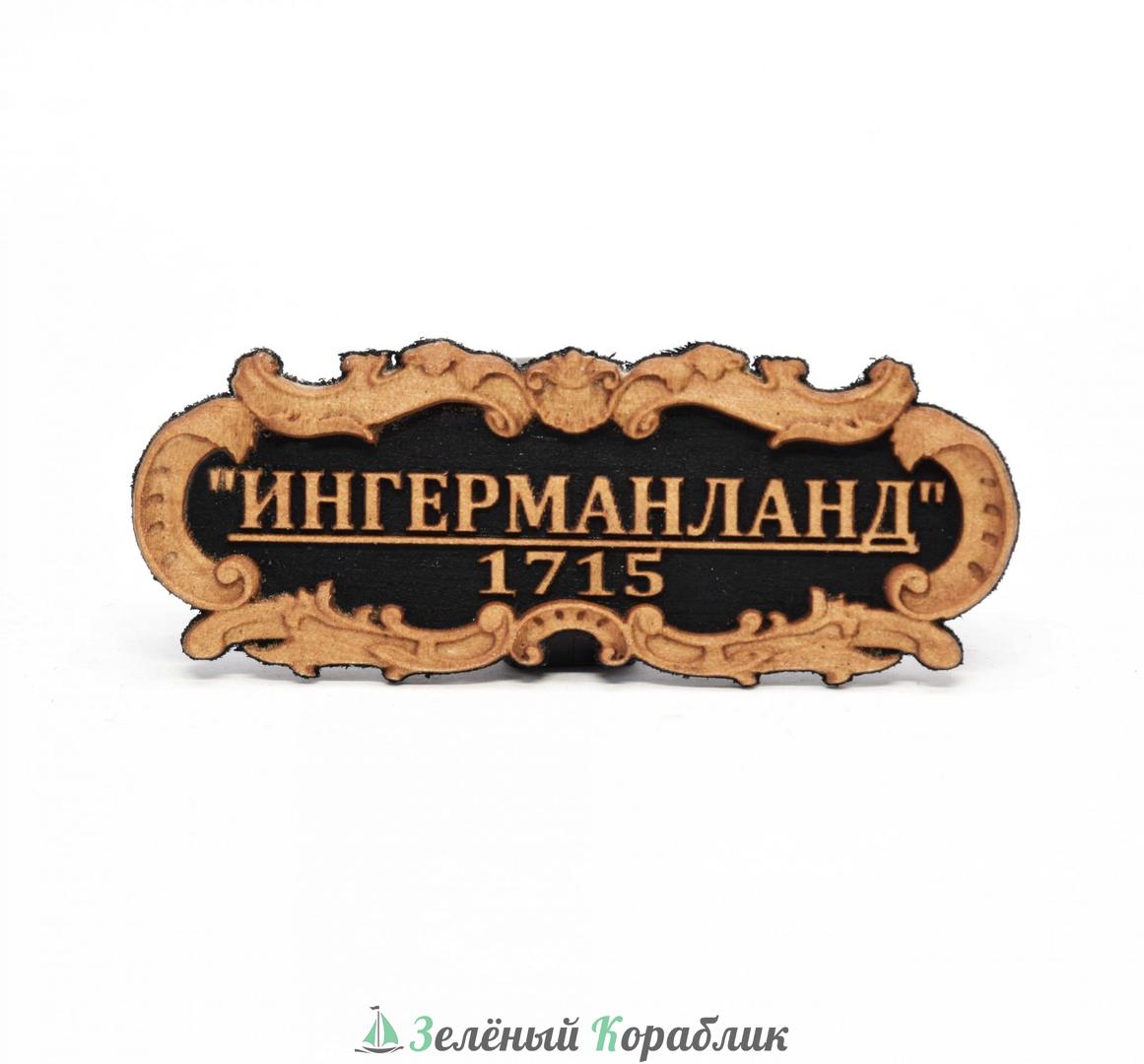 Табличка для модели корабля «Ингерманланд» (1715 г.). Изящный объёмный декор по периметру и качественная проработка всех элементов сделают эту табличку идеальным украшением вашей модели. Характеристики: Размер: 55×23 мм. Материал: массив груши на подложке из чёрного шпона анегри. Технология: изготовлена на ЧПУ с точностью до 0,02 мм. Покрытие: датское масло. Высокодетализированное исполнение подчеркнёт статус и завершённость вашей работы.