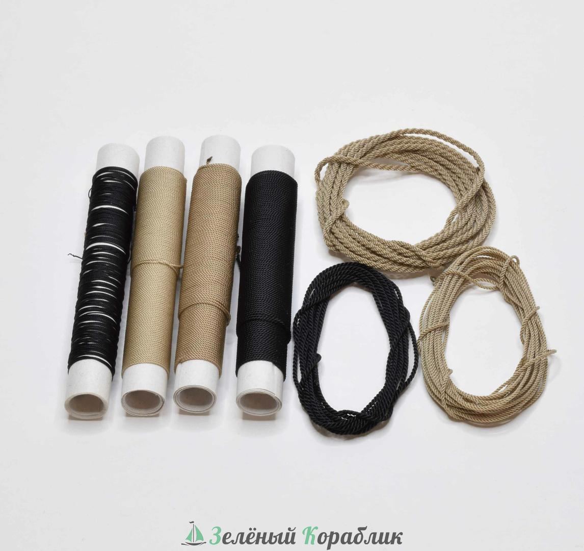 Набор высококачественных полиэфирных канатов ручной работы для сборной модели корабля «Транспорт „Байкал“» 1:72 («Эскадра»), артикул E7207. В наборе полный комплект канатов для стоячего и бегучего такелажа, а также якорный канат. Всего более 200 метров. Имеют правильную, плотную, красивую скрутку кабельного и тросового типа, не ворсятся, полностью имитируют НАСТОЯЩИЕ КАНАТЫ. Послужит идеальным дополнением для вашей модели корабля.