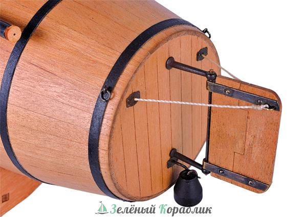 Обшивка 1,5 мм из груши, подставка тоже из груши. Скобы крепления труб "греческого огня" - действующие, внутри трап и сиденья для гребцов. Штанги крепления руля и балластные грузы литые из металла с чернением. В наборе есть кондуктор для изгиба реек обшивки точно в размер. Работает по принципу - намочил- вставил- высушил- вынул. Сборная модель для детей от 8 лет, для самостоятельной сборки.